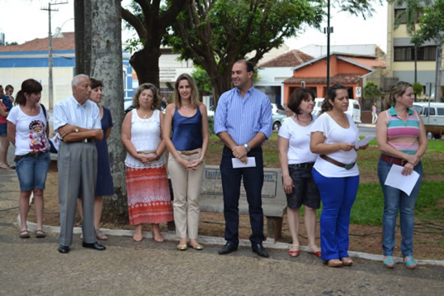 Na manhã da terça-feira (15), Dia dos Professores, aconteceu um momento de oração, na praça Valêncio de Barros, defronte à Prefeitura Municipal, organizado pelo Departamento Municipal de Educação e Cultura (DEMEC), na presença de representantes das escolas municipais de Bebedouro e alunos da Escola Conrado Caldeira.