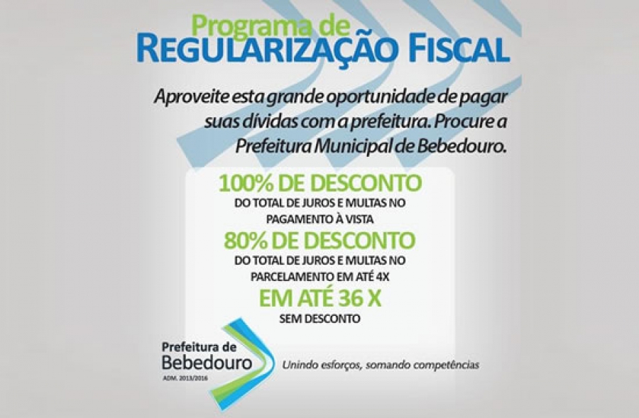 O contribuinte que estiver em dívida com o município poderá pagar seus impostos (IPTU, ISS, Taxa de Licença e levantamento Fiscal) atrasados, com desconto de 100% do total de juros e multas, desde que o pagamento seja à vista; com 80% de desconto nos juros e multas, para os parcelamentos em até 4 vezes; ou sem desconto, em 36 vezes.