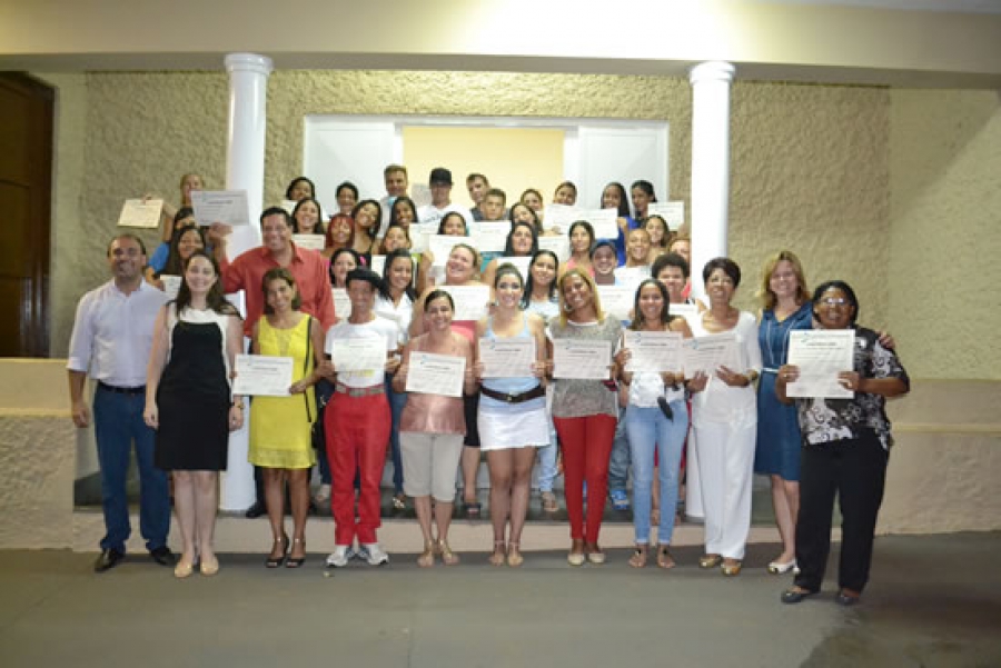 Durante a cerimônia, os alunos deram depoimentos de sua participação das oficinas, como o Sr. Nelson Torres, que deixou a profissão de motorista de caminhão, para trabalhar ao lado da esposa em um salão.