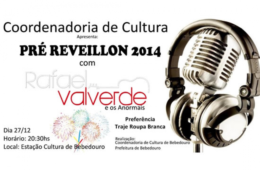 A Prefeitura Municipal de Bebedouro em parceria com a Coordenadoria de Cultura, realiza na sexta-feira (27), às 20:30H, na Estação Cultura de Bebedouro, o Pré Réveillon 2014, com Rafael Valverde e os Anormais.